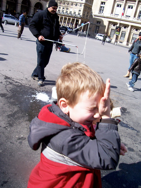 Right outside the Louvre, we found a guy blowing giant bubbles. The kids loved this: